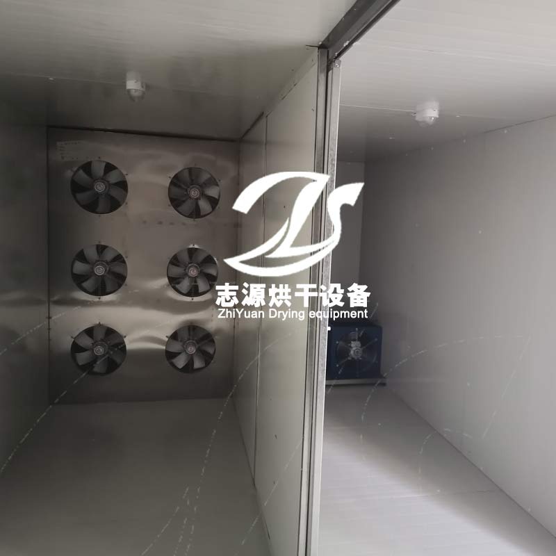 2、将装好盘的辣椒推入凯志空气能热泵辣椒烘干机烘干房内进行烘干。