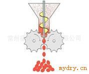 DH系列干法辊压造粒机是采用干法辊压工艺技术,对含水量≤5%的粉状物料进行压缩成片或块状,再经破碎整粒、筛分工艺,使片块状物料变成符合使用要求的颗粒状物料。干法辊压造粒主要靠外部加压方式,使物料强制通过两个相对旋转辊轮间隙,强制压缩成片块状,在辊压过程中,物料的实际密度能增大1.5~3倍,从而达到-定的颗粒强度要求。