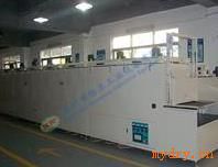 BW-SD61-9型隧道炉1、BW-SD61-9型隧道炉主体规格(1)内胆规格尺寸:W650*H400 (mm);(2)外形规格尺寸:L9200*W1180*H1700 (mm);(3)设备分区:前进料区长600mm,恒温烘烤区8000mm,出料区长600mm;进料口高400mm,进料口宽650mm;地面到输送带的高度为900mm±20mm;(4)材质:外壳1.2mm冷板烤漆,内胆1.0mm304#不锈钢;(5)保温隔热:炉体保温层厚150mm厚硅酸铝岩棉,耐高温硅胶条密封;2、BW-SD61-9型隧道炉输送(1)输送带:采用SUS304#不锈钢网链,输送网带有效宽650mm;(2)输送速度:速度1-3m/min,步进式传动;(3)输送驱动:400W传动马达配台湾台达400W变频器实现无极调速;3、BW-SD61-9型隧道炉温控(1)温度:室温至200℃可调、可恒温;(2)加热:加热功率:翅片式不锈钢发热管54KW,顶部安装8套0.75KW马达,配400mm风扇页向下垂直运风;(3)温控:日本欧姆龙牌微电脑数显温控器加台湾泰矽SCR电力调整器控温,输入模式为精密K型热电偶;(4)功能:人机界面操作。P.I.D自整定、自动恒温、超温报警、漏电保护、电机过载保护、缺相反相保护等功能;4、BW-SD61-9型隧道炉电源——AC380V,50HZ,三相五线制。总功率约61KW;5、BW-SD61-9型隧道炉UV光源(1)UV灯管:2套5.6KW高压汞灯,UV波长为365nm; (2)UV电源:配升压变压器、高压电容、反光罩、冷光片; (3)控制:配电子累时器,监控UV灯管使用寿命; (4)冷却风机:顶部安装2台750W台湾三越离心风机;