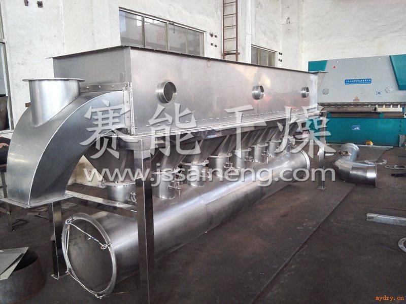 洁净的热风经阀板分配进入床体内,从加料器进入的湿物料被热风形成沸腾状态。由于热风与物料广泛接触,增强了传热传质的过程,因此在较短时间内就可干燥。如用连续型,物料从床体的一头进入,经过几十秒***分钟沸腾干燥,自动从床体另一头流出。本设备一般进行负压操作。