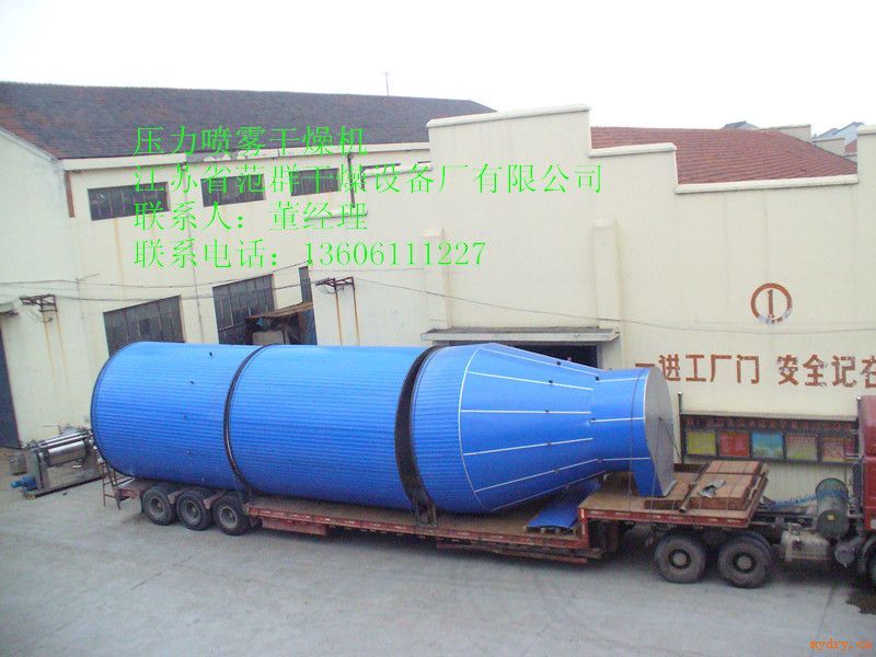 2、采用并流型喷雾干燥形式能使液滴与热风同方向流动,虽然热风的温度较高,但由于热风进入干燥室内立即与喷雾液滴接触,室内温度急降,物料不会过度受热,因此适宜于热敏性物料干燥。