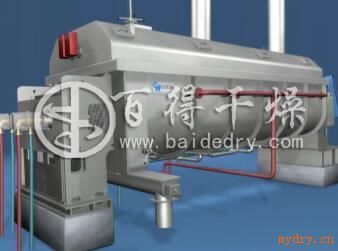 KJG-15型空心桨叶干燥机设备概述 空心桨叶干燥机是一种以热传导为主的卧式搅拌型连续干燥设备,因搅拌叶片形似船桨,故称桨叶干燥机,国外也称槽型干燥机或搅拌干燥机。因设备干燥所需要的热量依靠热传导间接加热,因此干燥过程不需或只需少量气体以带走湿份。极大地减少了被气流带走的这部分热量损失,提高了热量利用率,是一种节能型干燥设备。 桨叶干燥机广泛应用于石油化工、化工、冶金、食品、医药、农药等行业中粉状、粒状、滤饼状、浆液状物料的干燥。KJG-15型空心桨叶干燥机设备概述 空心桨叶干燥机是一种以热传导为主的卧式搅拌型连续干燥设备,因搅拌叶片形似船桨,故称桨叶干燥机,国外也称槽型干燥机或搅拌干燥机。因设备干燥所需要的热量依靠热传导间接加热,因此干燥过程不需或只需少量气体以带走湿份。极大地减少了被气流带走的这部分热量损失,提高了热量利用率,是一种节能型干燥设备。 桨叶干燥机广泛应用于石油化工、化工、冶金、食品、医药、农药等行业中粉状、粒状、滤饼状、浆液状物料的干燥。KJG-15型空心桨叶干燥机应用范围 桨叶干燥机已成功地用于食品、化工、石化、染料、工业污泥等领域。设备传热、冷却、搅拌的特性使之可以完成以下单元操作:煅烧(低温)、冷却、干燥(溶剂回收)、加热(融化)、反应和灭菌。 设备*主要的功能,不使用热空气,使溶剂回收、能源消耗、环境控制处于易处理的理想状态。对需回收溶剂、易燃易氧化热敏性物料尤为适应。轴向区间内,温度、湿度、混合度的均匀性,使得设备可用来加热或融化,或进行一些固体物料反应。在复合肥及变性淀粉行业均已成功使用。 桨叶干燥机可用来对食物和面粉进行灭菌处理。单位有效容积内大的加热面积,很快就将物料加热到灭菌温度,避免了长时间加热而改变物料品质。KJG-15型空心桨叶干燥机性能特点1、能耗低,操作费用小:设备结构紧凑,有效传热面积大,占地面积小;2、适用物料范围广:使用不同热介质,既能处理热敏性物料,又可以处理需高温干燥的物料。常用介质有:水蒸汽、导热油、热水、冷却水等。既可连续干燥,也可以间歇式干燥,能在很多领域应用。3、搅拌均匀、热效率高、干燥效果好;4、桨叶轴可相互啮合,具有自清理作用,防止物料粘壁;5、粉尘夹带小、物料损耗少,环境污染小;对有污染的物料或需回收溶剂的工况,可采用闭路循环或真空干燥。